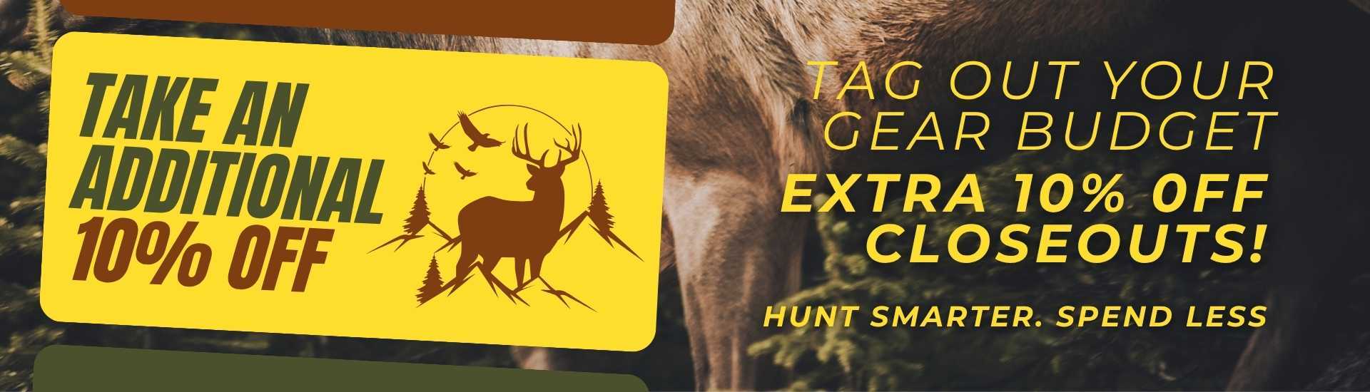 EABCO’s Closeout category is already packed with markdowns on hunting and precision shooting gear. Now, for a limited time, take an extra 10% off everything in Closeouts.